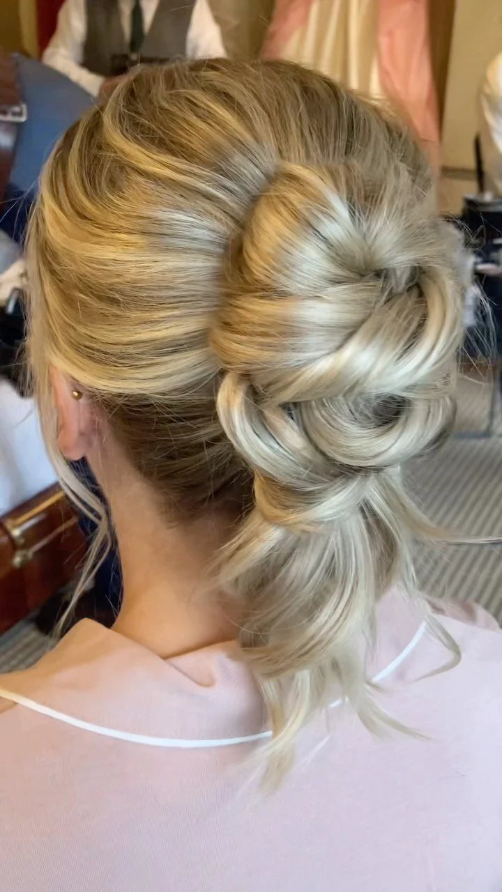 This styled shoot took place at Willow Marsh Farm with a modern luxe feel to it. For the model's hair I wanted to create an elegant updo that would suit both dresses and work with the veil…
